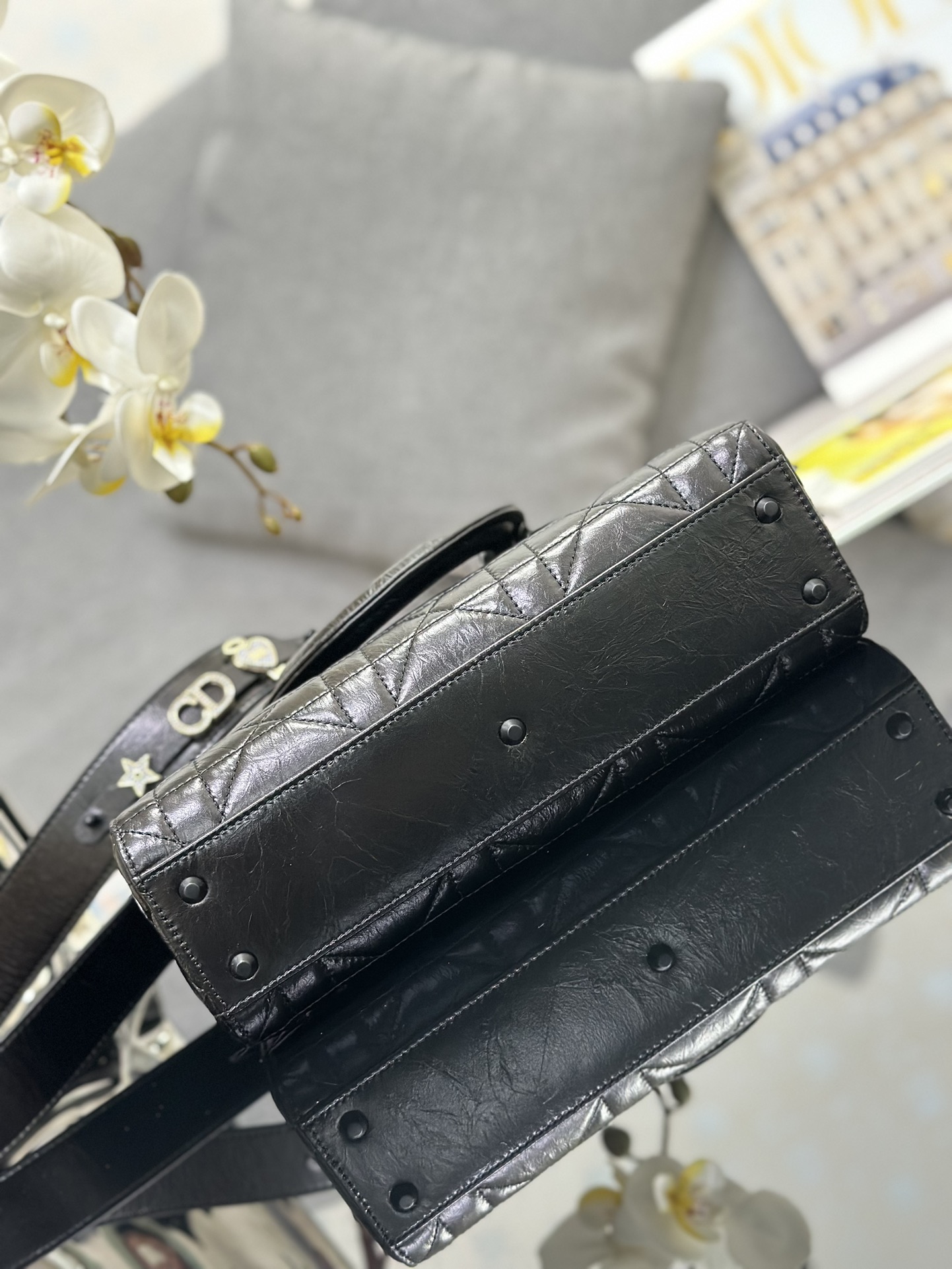 3. Chi tiết khóa kim loại “D”: Điểm đặc trưng của Dior D-Sire là khóa kim loại hình chữ “D”, biểu tượng của Christian Dior. Khóa này không chỉ giúp túi dễ dàng đóng mở mà còn là một chi tiết thẩm mỹ nổi bật, tạo điểm nhấn cho thiết kế tổng thể của chiếc túi.