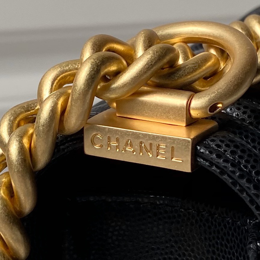 Túi xách Channel Le boy đen dây vàng